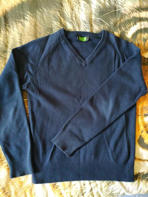 Приятная к телу натуральная ткань,с v-образной горловиной,темно-синий цвет,без затертостей. ПОГ-43 длина по спинке-53 рукав от горла-66
