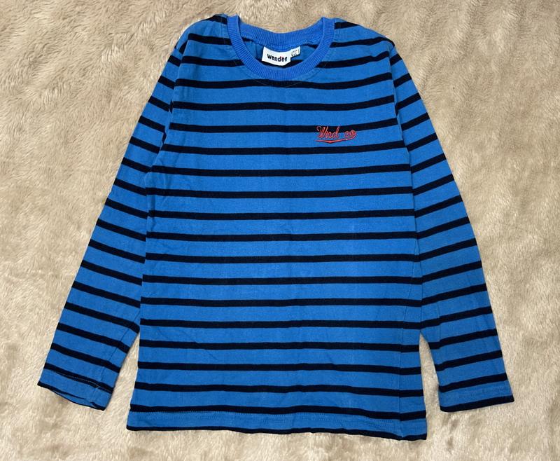 Светр wendee. Колір синій у чорну смужку. Склад 100% бавовна. Розмір 116 см/6 років. Заміри: Довжина рукава 41 см Від пахви до пахви у лежачому стані 32 см По спинці 44,5 см
