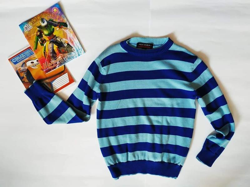 Модний светр з подвійними манжетиками і горловиною. Яскраве забарвлення, якісна нитка. Светрик у відмінному стані, після однієї дитини. Без дефектів потертостей нюансів запаху. Бренд REBEL на ріст 128-134 див. Доставка Укрпоштою та Новою поштою по передоплаті на пересилку, можливий наложений платіж по передоплаті у розмірі 150 грн.