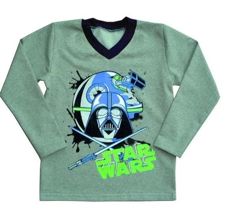 Джемпер для хлопчика з V-подібним вирізом, прямого крою. Прикрашений накатом з відомого фільму. Колір: Сірий; Полотно: Футер без начісування (2-х нитковий); Склад: 95% бавовна, 5% еластан; В наявності зростання 122