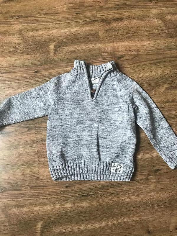 Сіренький в'язаний светрів. На замочку. Довжина 37см, довжина рукава від коміра 36см, ПОгруди 31см. Зазначений розмір 92.