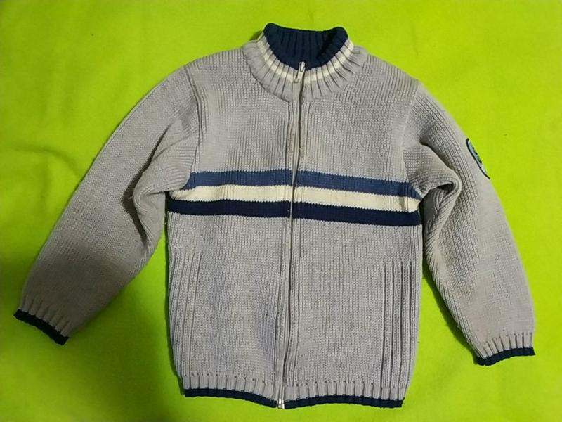 продам кофту для мальчика на 4-6 лет в зависимости от роста, в хорошем состоянии, цвет серый с синими и белой полосками, застёжка молния, хорошая теплая кофта, есть катыши длина по спинке от горловины 39 см, длина рукава 37 см, по плечу 8 см, ПОГ 34 см при необходимости сделаю дополнительно фото или замеры отправлю Новой почтой или УкрПочтой с предоплатой или наложенным платежом