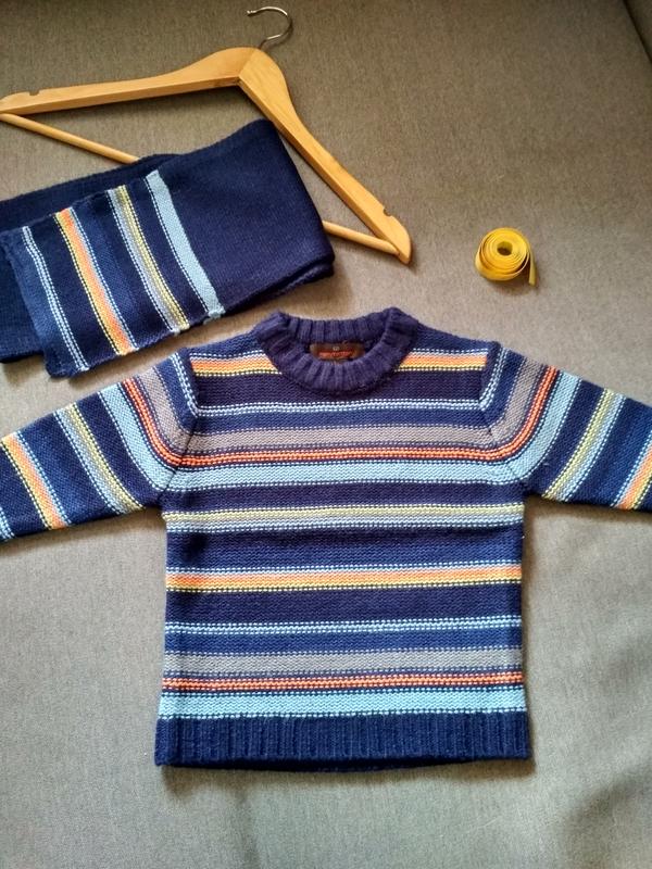 Новий в'язаний светр із шарфом Reputation, США, хлопчику на 2 3 4 роки — 350 грн. Продам новий в'язаний светр із шарфом Reputation, 84 зі США. На хлопчика 2-3-4 роки. Розмір S. Дуже стильний і ошатний. Джемпер середнього в'язання, теплий, синього кольору. У смужку. Виріз круглий. Склад: 100% акрил. Машинне прання. Заміри: Довжина рукава від шва на плечі — 27,5 см Довжина кофти від шва на плечі — 38 см Ширина по плечах — 28 см у спокійному стані Ширина під рукавами — 31 см у спокійному стані Заміри додатково і фото за запитом зроблять. Доставка Нової й Укріпкою, Justin. Або самовивоз Київ, Познаки. Дивіться інші свої оголошення. Заощаджуйте на доставці.