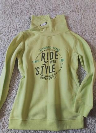 На мальчика утеплённый реглан. Яркий салатовый цвет .