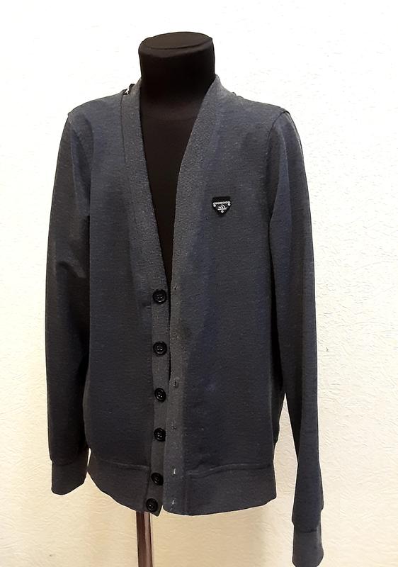 Стильна кофта - кардиган для хлопчика. Розмір 140 см. Довжина по спинці 57 см, довжина рукава від плеча 62 см ,ширина під пахвами 41 див. Склад :48 % коттон,48 % поліестер,4 % лайкра.