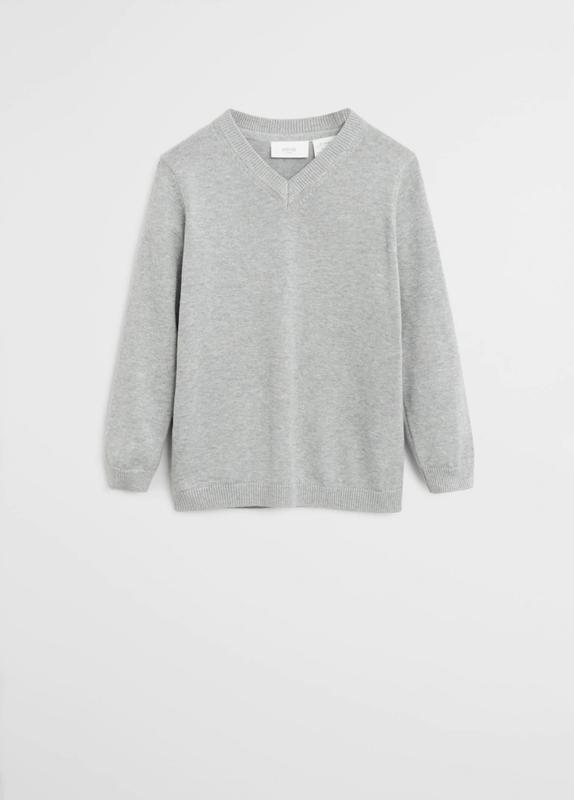 Класний светр з V-подібним вирізом від Mango. Довгі рукави . Ребриста оздоблення. Дуже приємна м'яка тканина. Склад: 100% бавовна. Колір: сірий меланж. Розміри в наявності: 110, 116, 122, 128-продан, 134, 140. Ціна остаточна! 128: Довжина від плеча вниз 48 Ширина плечей 28,6 ПОГ 36,2 Рукав від плеча 44
