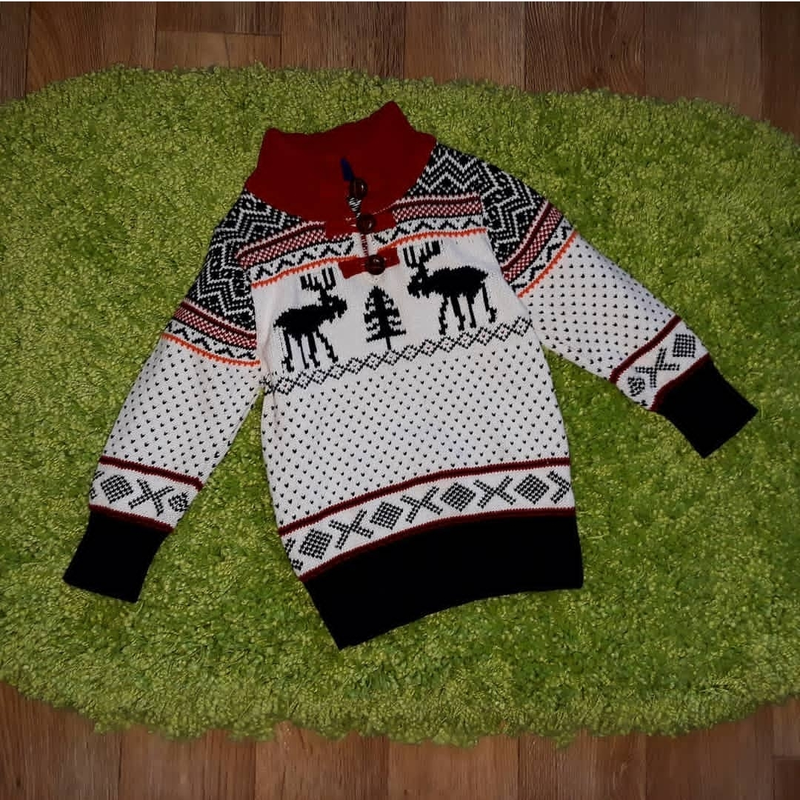 Шикарний фірмовий светр Gap оригінал. Купували новий в магазині( не секонд і не сток). Якість прекрасний,теплий( подвійна в'язання),не колеться,з високим горлом.Розстібнути ґудзики, зручно одягати. Розмір вказаний 5 років. Трохи маломерит,підійде і на 4 роки. Заміри: Довжина від плеча до низу 47 Ширина під ручками 31 Рукав від плеча 36 Плечі 28 Відмінно тягнеться.