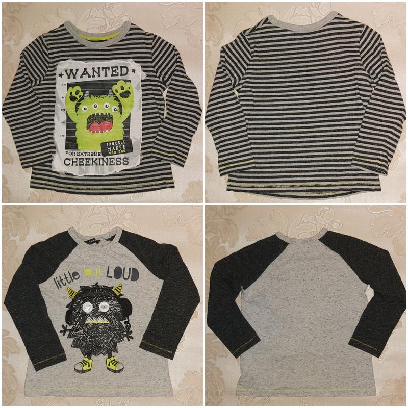 ціна за 2 шт. в дуже хорошому стані. 85% cotton, 13% поліестер, 2% viscose 3-4 роки, ріст 98-104 див. д. 36 див., д. рукава від плеча 33.5 див. - смугаста. в дуже хорошому стані. cotton 96%, polyester 4%. на ріст 98-104 див. д. 39 див., д. рукава від горловини 41.5 див.