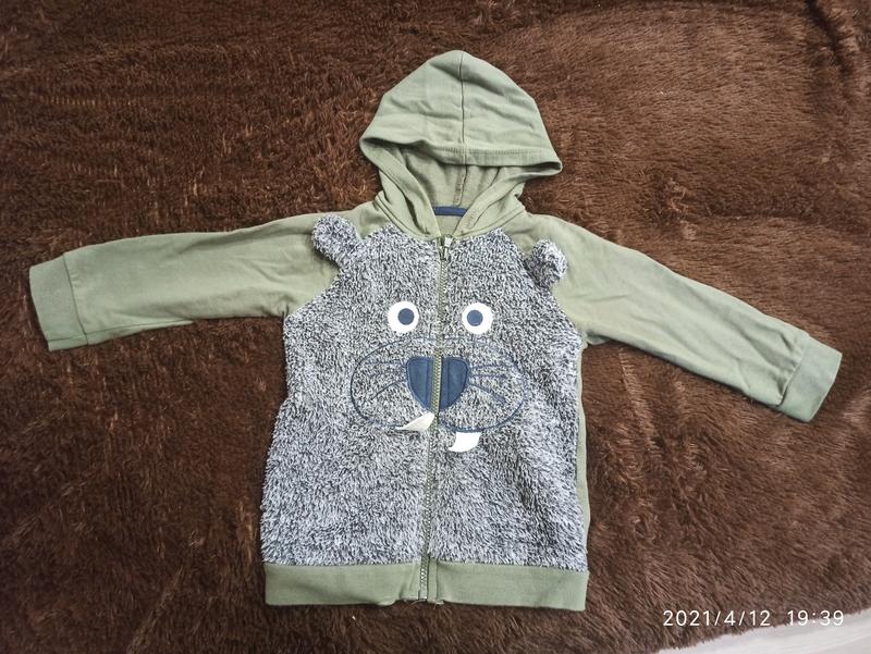 Кофта на замочку в ідеальному стані, одягали пару разів. На вік 4-5 років. Заміри Довжина по спинці 39див Рукав 29см Ширина 31см Тепленька.