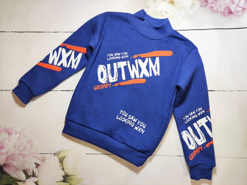 Тканина 3-х нитка начіс . Довжина рукава від плеча: 6 років 41 см 7 років 43 см 8 років 45 см 9 років 47 див. Колір: синій, сірий.