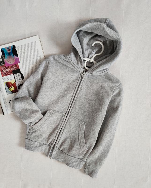 сірий худі на замку з кишенями від H&M для хлопчика 4/6 років на зріст 110/116 см, ПО грудей 36 см, довжина 43 см, рукав 42 см