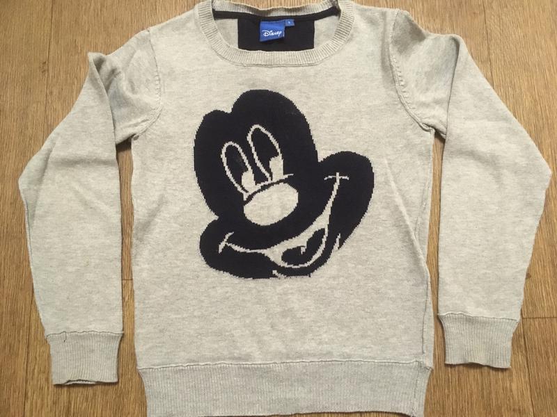 Симпатичний светрик, тоненький, приємний до тіла, з милим принтом. Відмінний стан, але є нюанс - малопомітні цятки на спинці. Заміри надам.