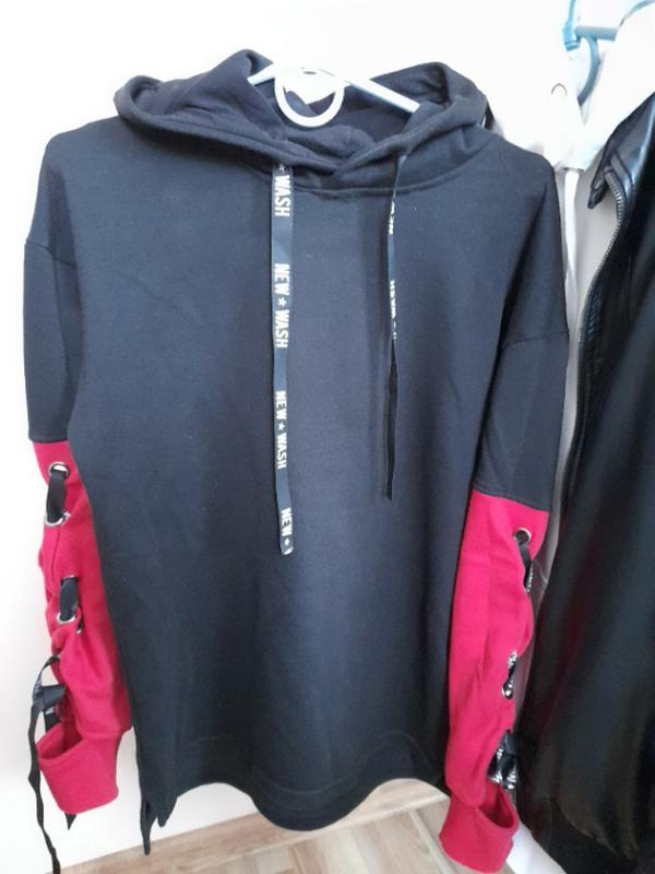 чорно-червона кофта,улюблена кофта сіна,на рукавах зав'язки,класно дивиться ,стан хороший.