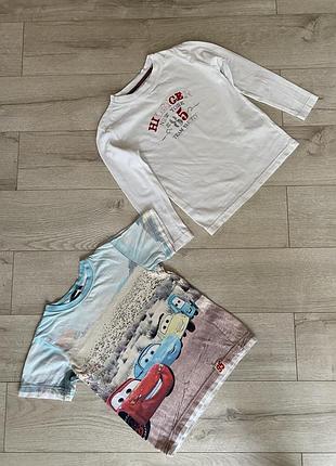 Фото на тілі ні Одна Майка з мультяшним малюнком тачки Інша біла кофта з довгими рукавами Майка і кофта не ідеальні але малюкові на дачу або по будинку можна носити З нюансів-Майка трохи вицвіла а на кофті невелика дірочка-всі зазначено на фото Заміри кофти Довжина 43,2 см) Плечі 32 см) Рукав 37,5 см) Пог 36,2 см) Піт 34 см, Знизу 33 см) Заміри Довжина Майки 43-44 см) Плечі 29 см) Рукав 13,5 см) Пог 34,5 см) Піт 33 см) Знизу 35,3 см) Підійде на 4-6 років)