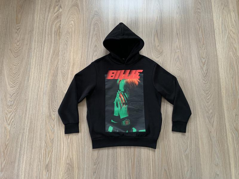 Підліткове худі з принтом Billie Eilish Розмір у см 1. Ширина в плечах 44 см 2. Напівобхват грудей 54 см 3. Довжина 64 см 4. Напівобхват талії 50 см 5. Довжина рукава 56 см