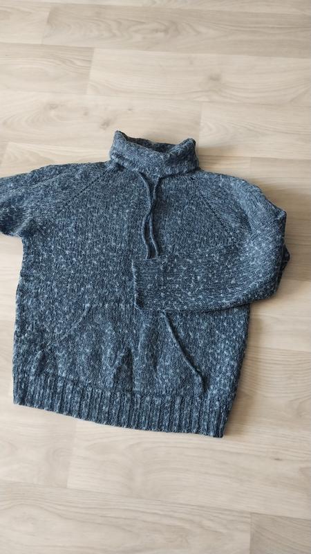 Дуже гарний худі в ідеальному стані, камера не передає колір, більш джинсовий. Рукав 43см. довжина 47см, ширина півобхват 42см В'язаний своїми руками, теплий. Напіввовна.