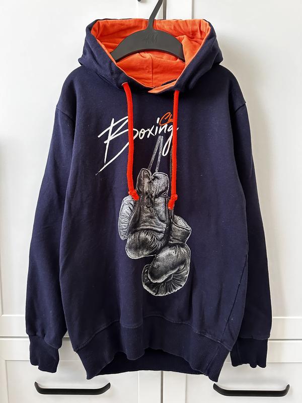 Класне худі на хлопчика 8 років, Виготовлено в Італії, стан хороший. Заміри : Рукав 53 сантиметри довжина від шиїної точки плеча 59 сантиметрів , довжина по центру від горловини 50 сантиметрів , пів обхват грудей 45 сантиметрів , пів обхват різінки по низу 38 сантиметрів. Boxing club - італійська фірма.