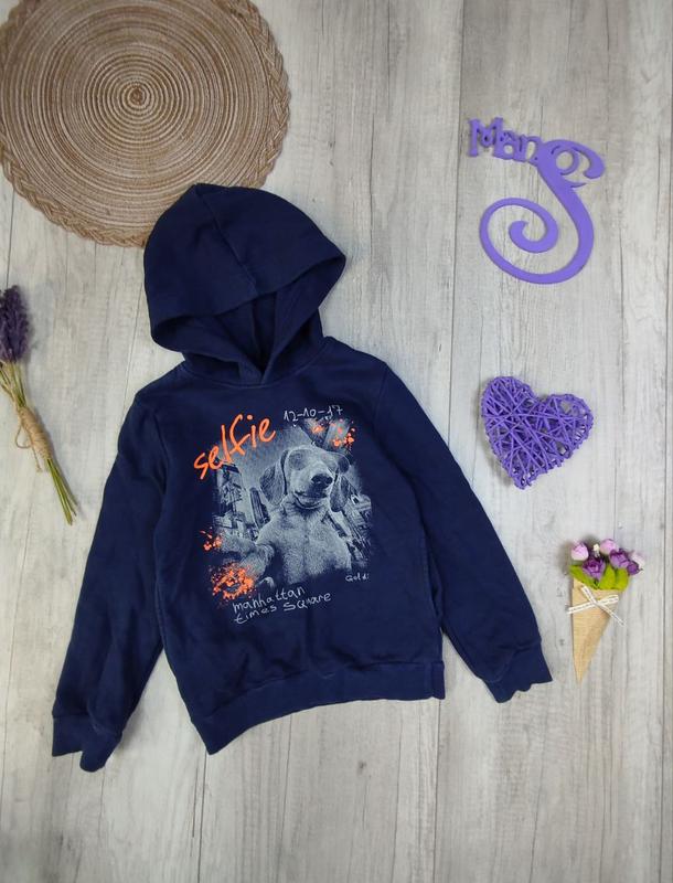 Худи для мальчика Goldi синее с рисунком. С капюшоном, длинный рукав с манжетом. По низу манжет, два боковых кармана. Состояние б/в хорошом состоянии Производитель Goldi Размер 122 (7 лет) Цвет - синий Принт рисунок Замеры: полуобхват груди 34 см, полуобхват талии 34 см, длина рукава 43 см, ширина по плечам 30 см, длина 45 см