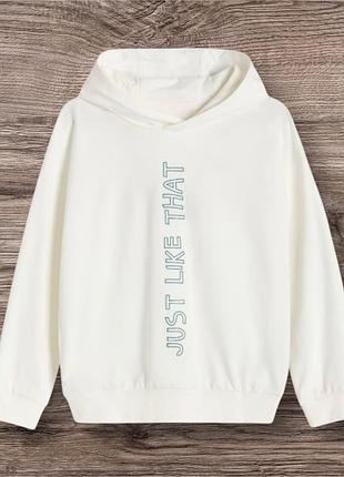 Свитшот худи свободного кроя из приятного на ощупь трикотажа с высоким содержанием хлопка. Большой мягкий капюшон Заниженная линия плеч Длинные рукава Края в рубчик Декоративный принт Одевался один раз