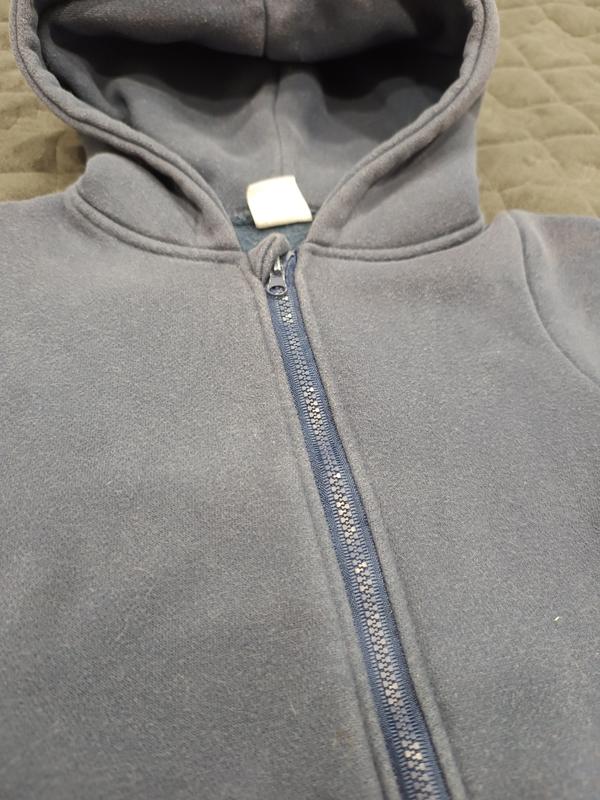 Комбінезон худі теплий, на фото трохи зіпсувався колір в житті трохи насиченіше синій. З недоліків вицвів колір і ковтунці.Розмір на бірці 90 носили до 1,5 року 11 кг