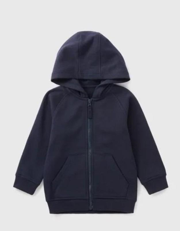 Трикотажне худі для дитини. Всередині з флісом. З капюшоном, всередині якого трикотажна підкладка. Застібка - блискавка спереду. Рукавчики та низ виробу на манжеті. Склад: 95% бавовна, 5% віскоза. Розмір Довжина по спинці Ширина під руками Довжина рукава від горловини 1,5-2 роки 38 см 32,5 см 36,5 см 2-3 роки 40 см 33 см 40 см 3-4 роки 42 см 34 см 41,5 см 4-5 років 43.5 см 35 см 43,5 см 5-6 років 46,5 см 36,5см 46 см 6-7 років 49,5 см 37.5 см 46,5 см