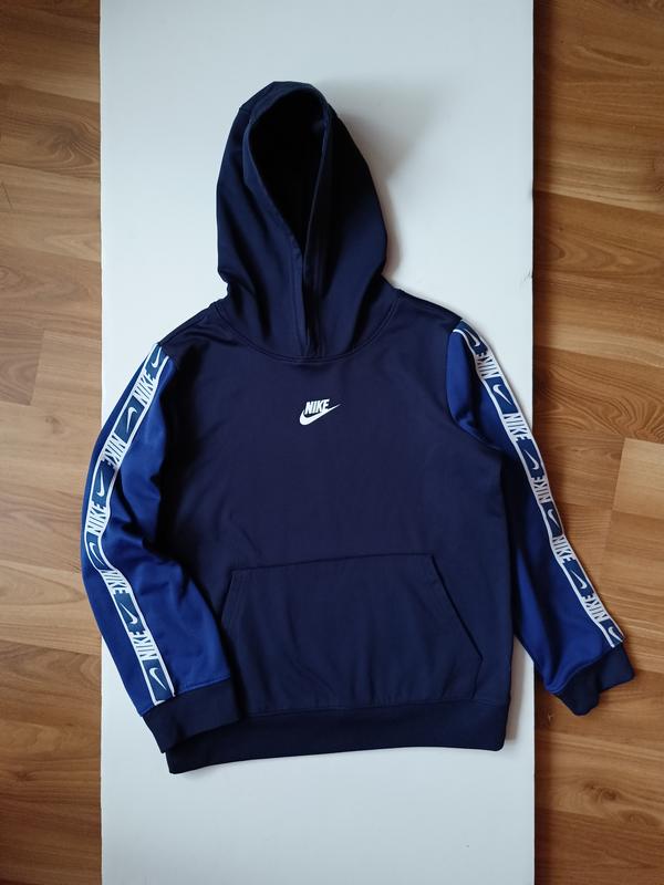Классное худи, утепление микрофлис. Синие рукава и темно-синяя основа, брендированные лампасы. Указан размер 137-147 см, замеры на фото. Идеальное состояние, никаких дефектов.