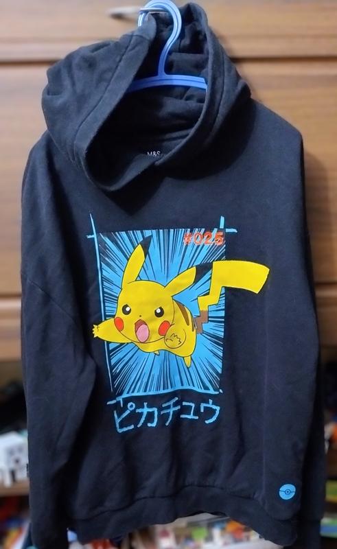 Фірмое худі для хлопчика бренду M&S Pokémon Pikachu, чорного кольору з зображенням героя. Стан добрий, має трошки втрату насиченості чорного еольору розмір 146 см на 10-11 років. Заміри: - довжина виробу 55 си - довжина рукава 545см - напівоб'єм грудей 48 см - напівоб'єм стегон 38 см - відстань між плечима 50 см