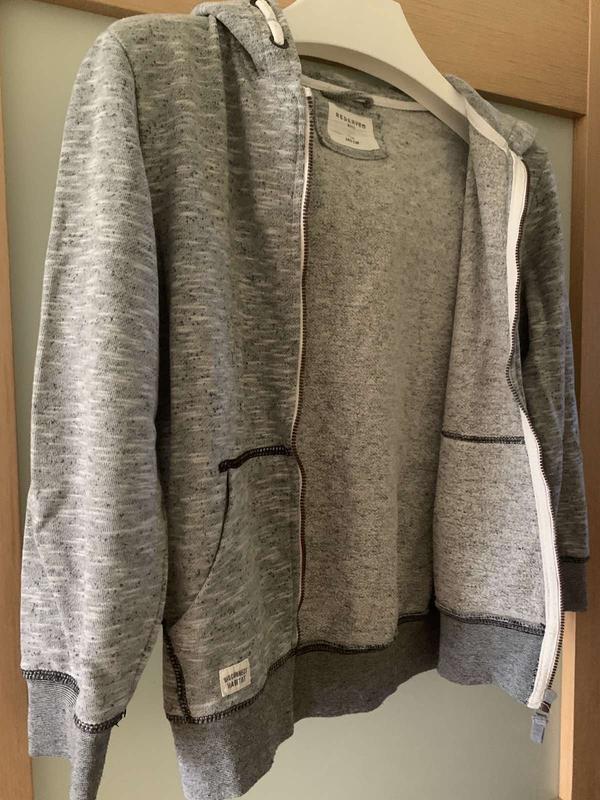 Зручна сіра трикотажна толстовка Reserved на блискавці з капюшоном, трохи утеплена р.140 У гарному стані. Довжина -52см, ПОГ -42см, рукав від плеча -47см з манжетом, плече -10см