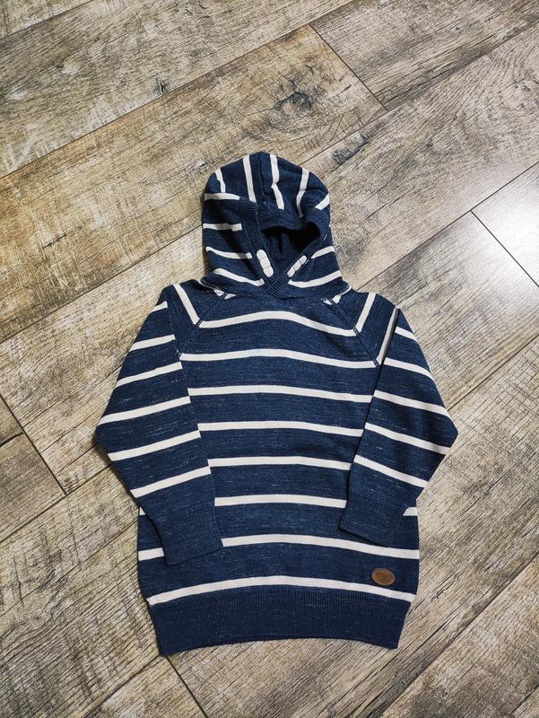 Кофта з капюшоном, толстовка в'язана, H&M, по бирці р. 98-104, за вимірами буде на р. 104-110, 4-5 років, відмінний стан, виміри на фото, на білій смужці є блакитна плямка (фото 4). 143грн.