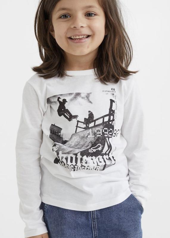 Топ з м'якого бавовняного трикотажу з друкованим мотивом спереду. Довгі рукави. Круглий виріз з вузькою обробкою. Склад:Бавовна 100%