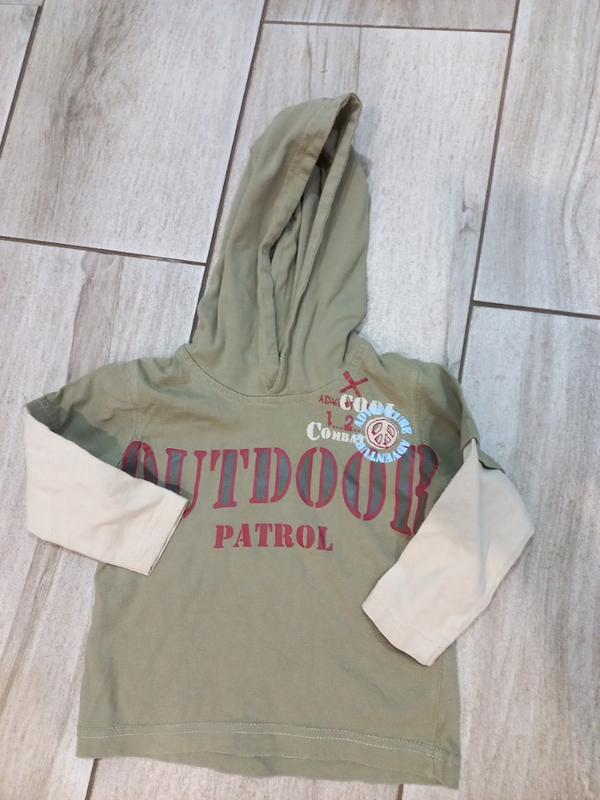 кофта на хлопчика з капюшоном на зріст 81-86 на 1,5 ,2 роки ,в гарному стані рукав 27,5 в груді 32 довжина 35 плечі 27