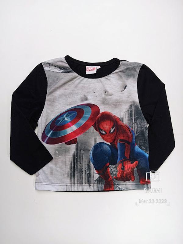 Лонгслив реглан кофточка Marvel Новый, но без бирки (учтено в цене). Размер указан на рост 98-104(3-4 года). Ориентируйтесь на замеры! Замеры: длина-36, плечи-27, полуобхват груди-31, рукав-32 Состав: 100% полиэстер. 100% предоплата. Доставка НП, Укрпочта(+10,00 грн к стоимости на упаковку)