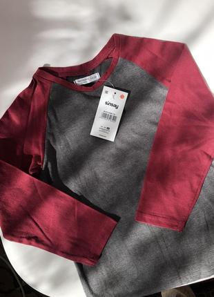 Сірий лонгслів з бордовими рукавами дуже стильний