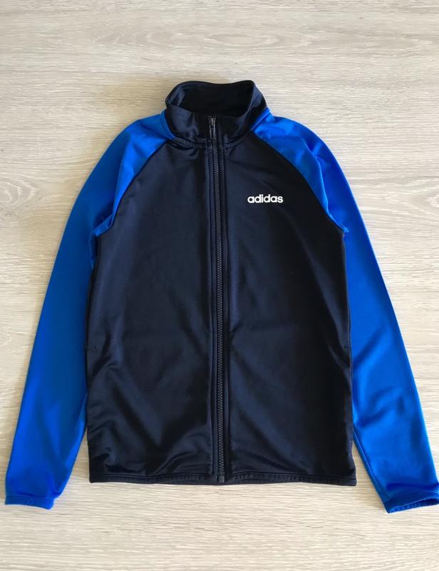 Adidas (оригінал) класнюча спорткофта з кишенями. Розмір з бірки S, 9-10 років, 140 см. Довжина 53 см.Напів обхват грудей 39 см. Рукав від ворота 62 см. Поліестер. Стан відмінний, сток.