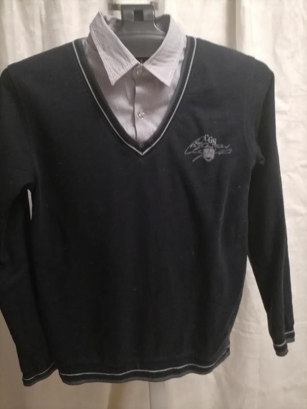 Добрий день Рада вітати Вас на своїй сторінці Всі речі в хорошому стані Гарна хлопчача кофтинка для школи, тоненька, защібається на 2 маленьких гудзика, трошки тягнеться Плече 11см Рукав 50 см Довжина 54 см СПИНКА 34 см НА півоб'єм грудей від пройми до пройми 42 см Купляєте те що на фото без претензій Перед покупкой все хорошо заміряйте, обміну та повернення немає Доставка НП та УП після оплати