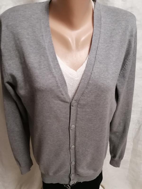 Добрий день Рада вітати Вас на своїй сторінці Всі речі в хорошому стані Гарний чоловічий кардиган, тоненький, защібається на 6 гудзиків, Фото на маленькому жіночому манекені Розмір вказаний L Плече 15 см Рукав 64 см Довжина 67 см СПИНКА 44 см НА півоб'єм грудей від пройми до 54 см Купляєте те що на фото без претензій Перед покупкой все хорошо заміряйте, обміну та повернення немає Доставка НП та УП після оплати на картку