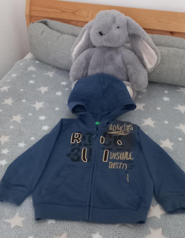 Красивая кофта в идеальном состоянии.Цвет темно-синий.Размер указан 90см.Замеры:ПОГ-33см,ПОБ(резинка)-27см,плечи-26см,рукав-32,5см,длина-35,5см.