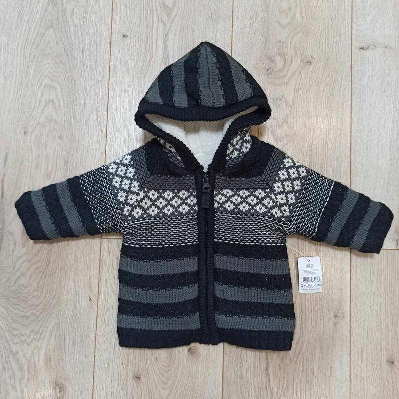 ⭐Теплая кофта для младенца, внутри мягкая и пушистая согреет ваших малышей👌 Материал: снаружи 100% акрил/ в середине 100% полиэстер Бренд: Nutmeg Размер: 0-3 мес/62 см/5.5 кг