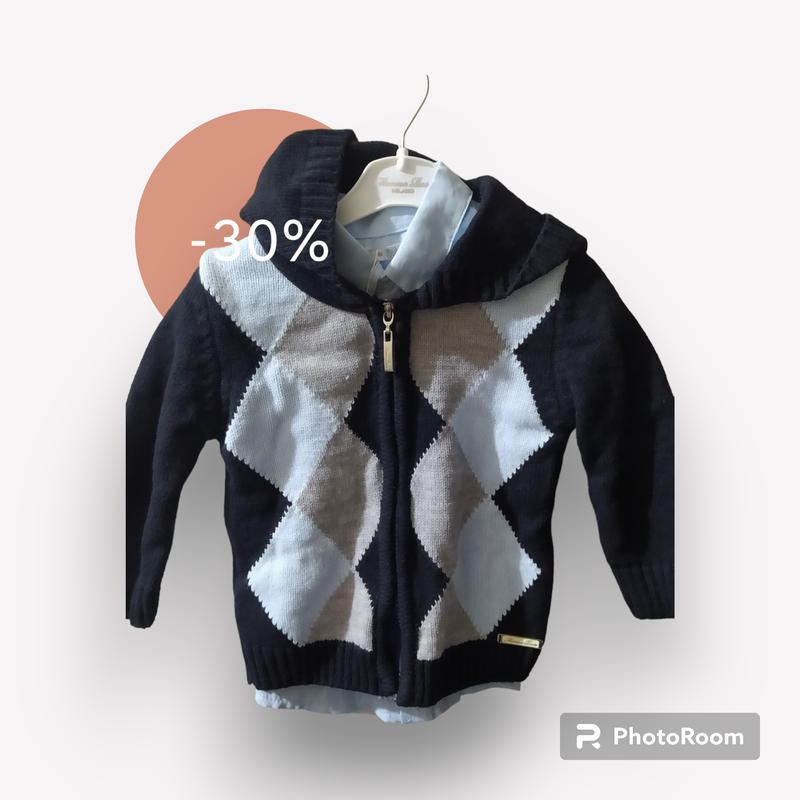 На мальчика вязаная кофта и рубашка 100% хлопок. На 2-3 года (92-98 см) Рубашка голубого цвета, кофта темно синего в ромбы Рубашка отдельно -140 грн Кофта - 180 грн