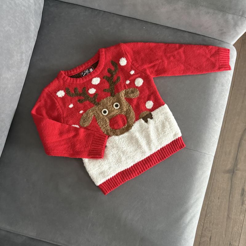 Класна новорічна кофта фірми F&F. На вік 4-5 років. Довжина 42 см, плечі 29 см, рукав 39 см