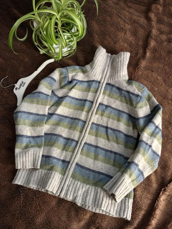 Кофта на змейке детская, подойдёт как на мальчика так и на девочку Состояние отличное, кофта шерстяная, очень тёплая! Есть дефект на собачке, замок работает отлично! (см.фото) Длина 48 см ПОГ 37 см Рукав 42 см от плеча до плеча 33 см