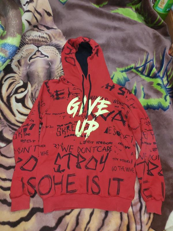 Худі на флісі, в дуже гарному стані. Заміри: довжина по спинці - 56 см, довжина рукава від горловини- 64 см, напівобхват грудей - 48 см.