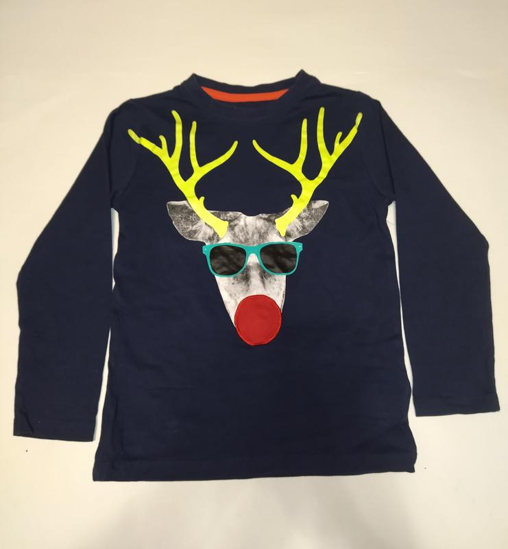 На 7-8 років (128 см). Фірма Bluezoo. У відмінному стані. При натисканні на червоний ніс він блимає. Ціна 70 грн. Довжина-50см, ширина по грудях -35см, довжина рукава-44см