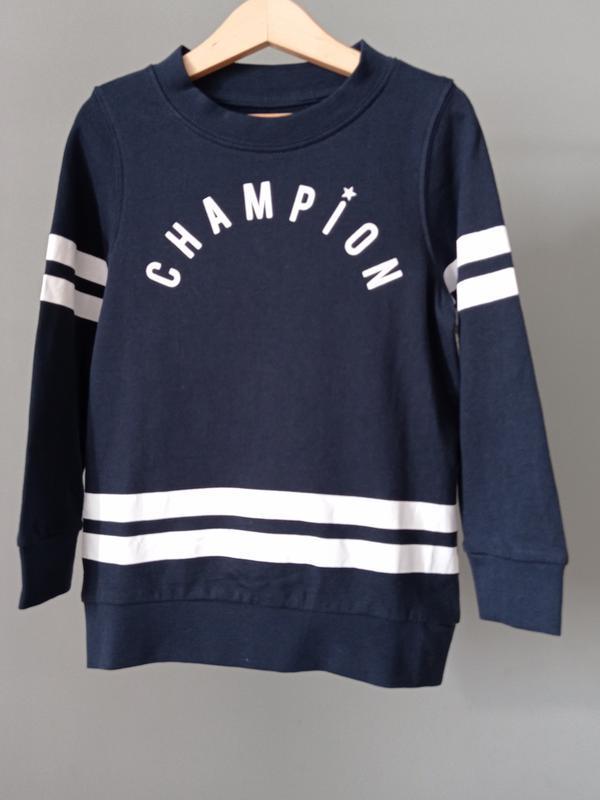 Тип одягу: Кофти 3.Кофта "Name it" Кофта, світшот для хлопчика "CHAMPION" . Зручні манжети на рукавах та по низу. Із внутрішньої сторони тепленький.Гарна якість. Склад: 100% бавовна Розмір в наявності: 5 років (110 см) Орієнтуйтеся також по замірах: Довжина по спинці - 45 см Ширина плечей - 26 см Довжина рукава від горловини - 46 см Довжина рукава від плеча - 41 см Ширина в талії - 33 см Допустима похибка в замірах 0,5-1,0 см