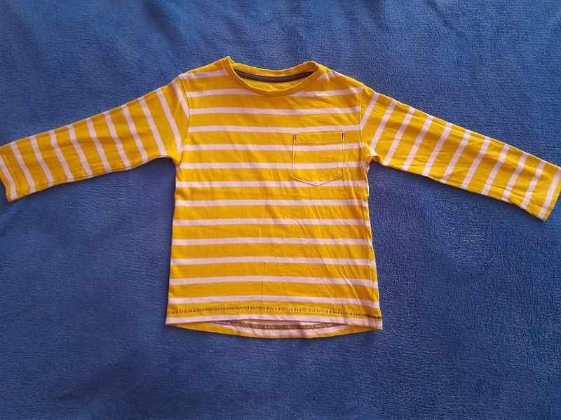 Лонгслів котоновий, на 3-4 рочки, 104-110см, салатового кольору у білу смужку з кишенькою