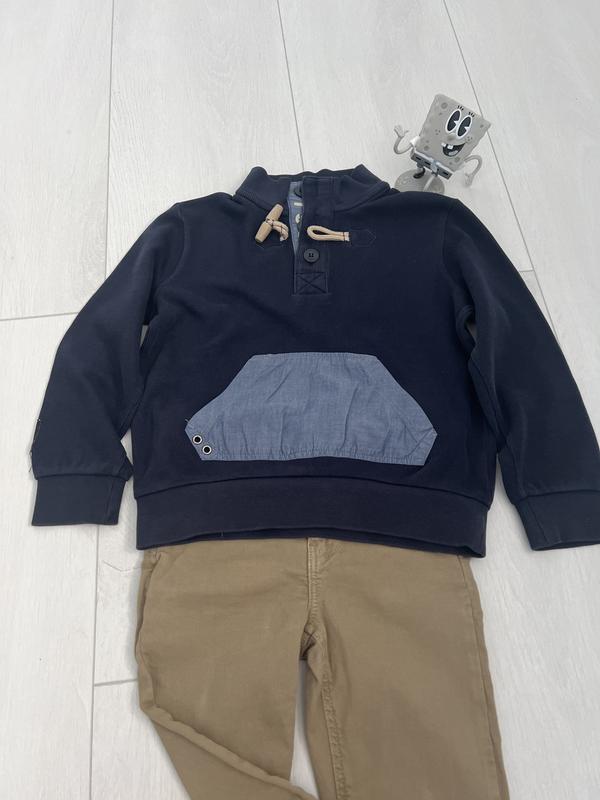 Гарна кофточка темно синього кольору з джинсовою вставкою-кишенею.