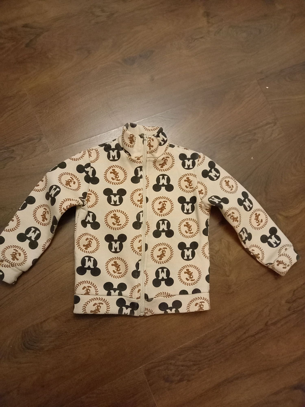 Виробник: Інший виробник Тип одягу: Толстовки Кофта, тепла МИКИ МАУС,як толстовка на флісі.Воротник стійка,на блискавці,без карманів,рукава та низ на манжетах.На ріст 110-120см.Довжина кофти 43см.рукав 36см.Майже ідеальна.