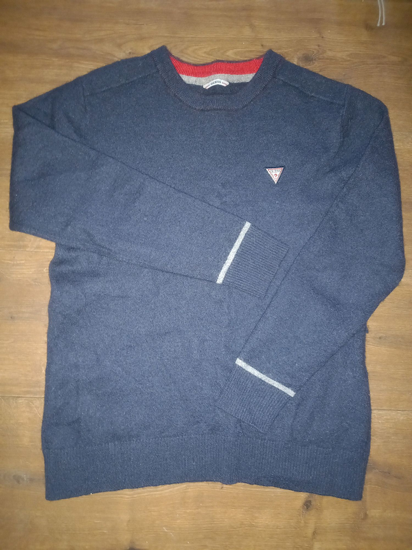 Виробник: Інший виробник Тип одягу: Светри Светір на хлопчика,дуже теплий з начосом ,торгівельного фірмового бренду GUESS.Колір темно синій,на рукавах манжети ,напрямі та на горловині манжети.Рукав 54,довжина 56,пояс 45.