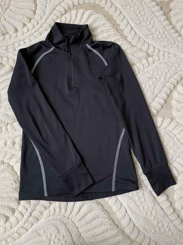 Лонгслів на 134-140 зріст , дуже хороший стан , застібка змійка , на манжетах є отвори для великого пальця, тканина еластік в середині має легке напилення флісу . Заміри в спокійному стані на фото