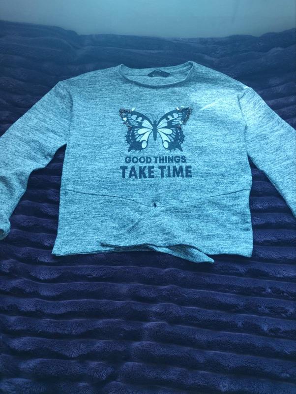 красивая кофточка с бабочкой и пайетками, на девочку 9-10 лет